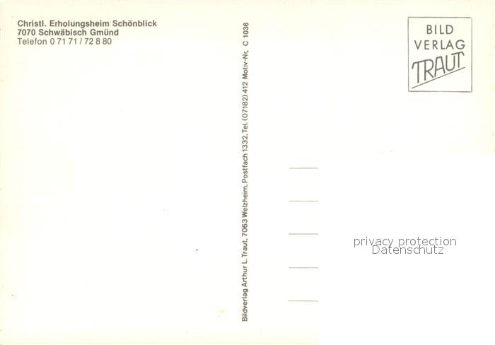 73687758 Schwaebisch Gmuend Christl Erholungsheim Schoenblick postalisch nicht gelaufen Erhaltung siehe scans [WerneD78] KatCode: 11110008136065