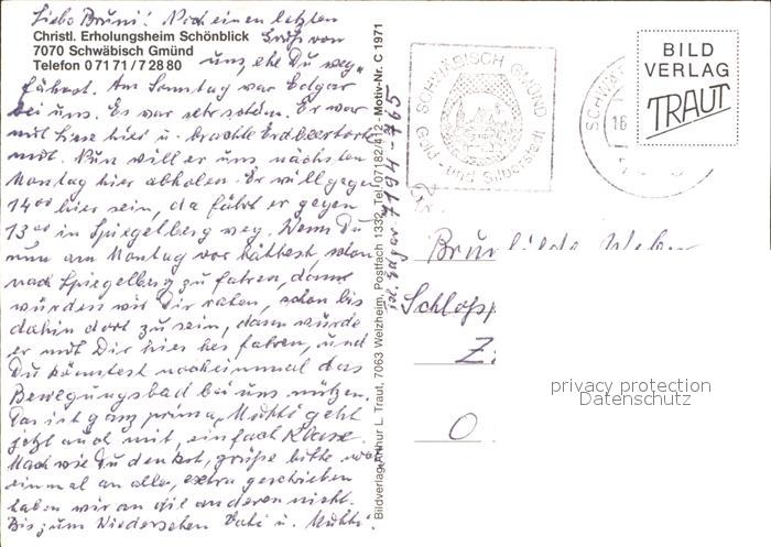 72245350 alte Postkarte Schwaebisch Gmuend Christliches Erholungsheim Schoenblick postalisch gelaufen Erhaltung siehe scans KatCode: 11110008136065