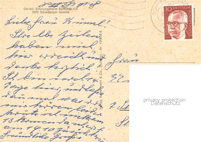 73762953 alte Postkarte Schwaebisch Gmuend Christliches Erholungsheim Schoenblick postalisch gelaufen Erhaltung siehe scans [FriedD77] KatCode: 11110008136065
