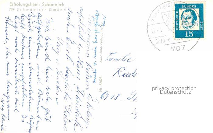 72919945 alte Postkarte Schwaebisch Gmuend Erholungsheim Schoenblick Fliegeraufnahme postalisch gelaufen Erhaltung siehe scans [WerneD78] KatCode: 11110008136065