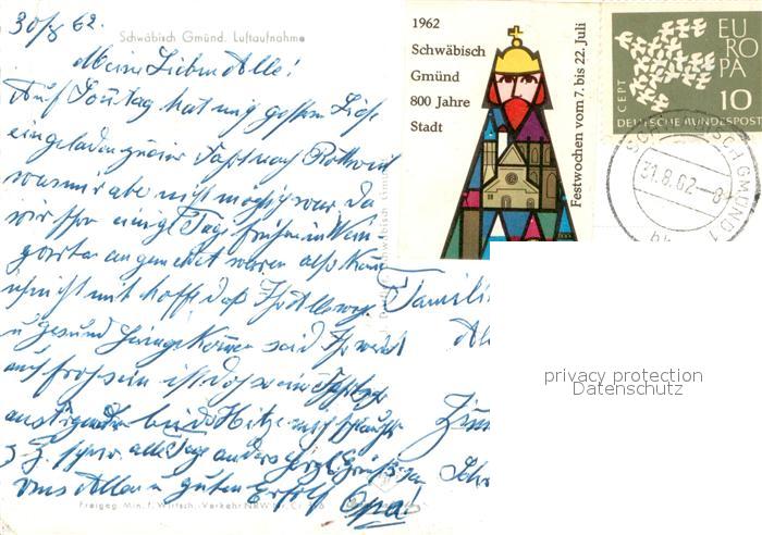73646518 alte Postkarte Schwaebisch Gmuend Fliegeraufnahme postalisch gelaufen Erhaltung siehe scans [FriedD77] KatCode: 11110008136065