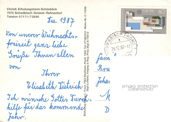 73719393 alte Postkarte Schwaebisch Gmuend Fliegeraufnahme Christl. Erholungsheim Schoenblick postalisch gelaufen Erhaltung siehe scans [LiesaD40] KatCode: 11110008136065