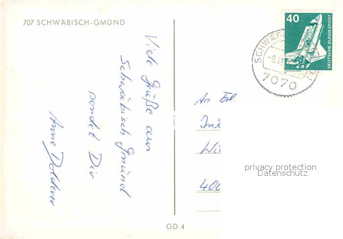 72839317 alte Postkarte Schwaebisch Gmuend Panorama postalisch gelaufen Erhaltung siehe scans [FriedD77] KatCode: 11110008136065