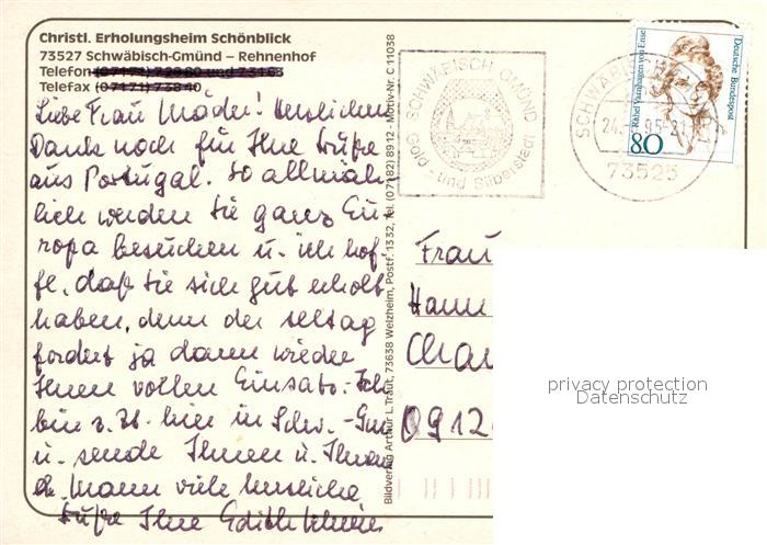 73011206 alte Postkarte Schwaebisch Gmuend Rehnenhof Fliegeraufnahme postalisch gelaufen Erhaltung siehe scans [WerneD78] KatCode: 11110008136065