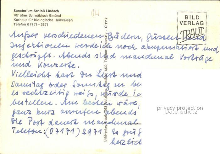 72017132 Schwaebisch Gmuend Sanatorium Schloss Lindach postalisch nicht gelaufen Erhaltung siehe scans KatCode: 11110008136065