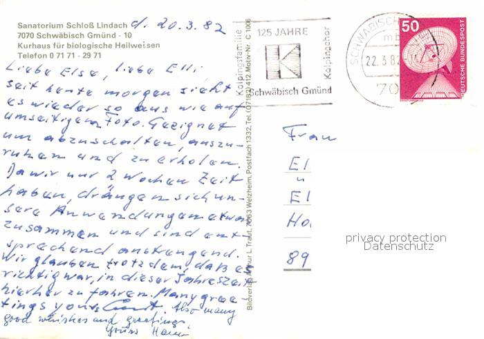 72711589 alte Postkarte Schwaebisch Gmuend Sanatorium Schloss Lindach im Winter postalisch gelaufen Erhaltung siehe scans [FriedD77] KatCode: 11110008136065