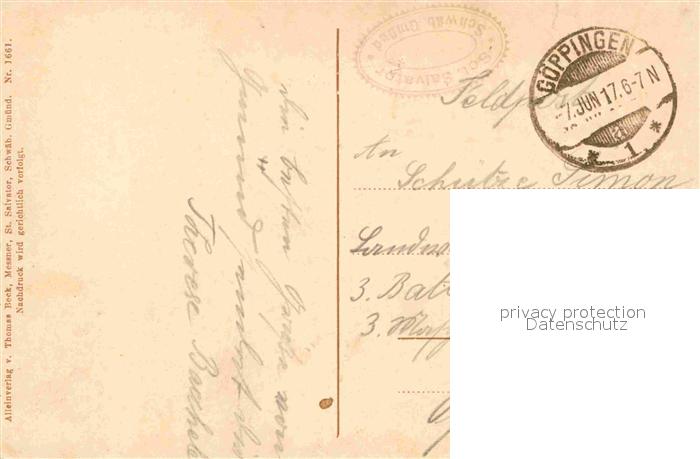 42897591 alte Postkarte Schwaebisch Gmuend St. Salvator postalisch gelaufen Feldpost Erhaltung siehe scans [NatalD47] KatCode: 11110008136065