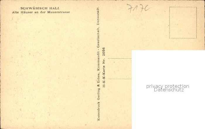 41579875 Schwaebisch Hall Alte Häuser an Mauerstrasse Kirchturm Kocher Künstlerkarte HKK Karte Nr. 2056 KatCode 11110008127076