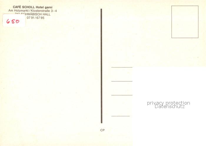 73159815 Schwaebisch Hall Cafe Scholl postalisch nicht gelaufen Erhaltung siehe scans [FriedD77] KatCode: 11110008127076