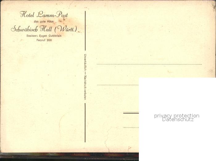 71907032 Schwaebisch Hall Einkehr beim Lammwirt postalisch nicht gelaufen Erhaltung siehe scans KatCode: 11110008127076