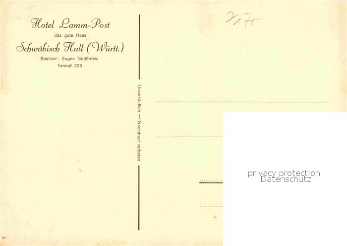 42646878 Schwaebisch Hall Einkehr Lammwirt postalisch nicht gelaufen Erhaltung siehe scans [KathaD79] KatCode: 11110008127076