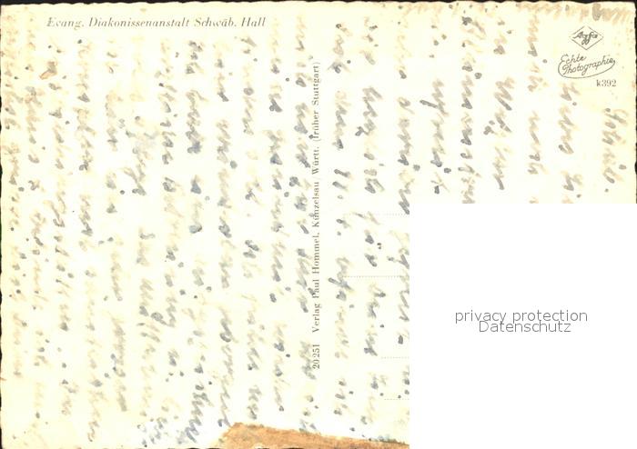 72234128 Schwaebisch Hall Evang Diakonissenanstalt postalisch nicht gelaufen Erhaltung siehe scans KatCode: 11110008127076