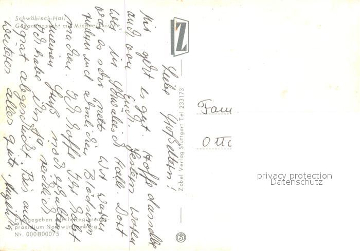 73047946 alte Postkarte Schwaebisch Hall Fliegeraufnahme postalisch gelaufen Erhaltung siehe scans [KathaD81] KatCode: 11110008127076