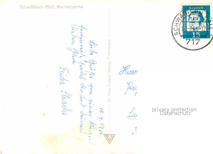 72885816 alte Postkarte Schwaebisch Hall Haeuserpartie am Kocher Bootfahren postalisch gelaufen Erhaltung siehe scans [FriedD77] KatCode: 11110008127076