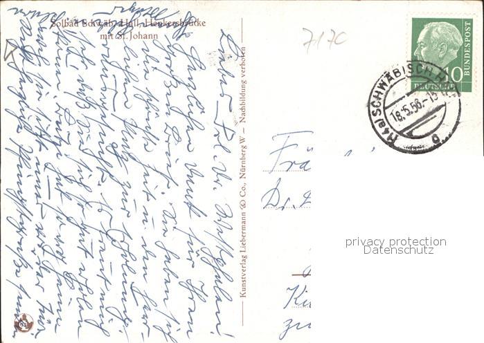 41580486 Schwaebisch Hall Henkersbrücke mit St. Johann Solbad Künstlerkarte L. Mössler KatCode 11110008127076