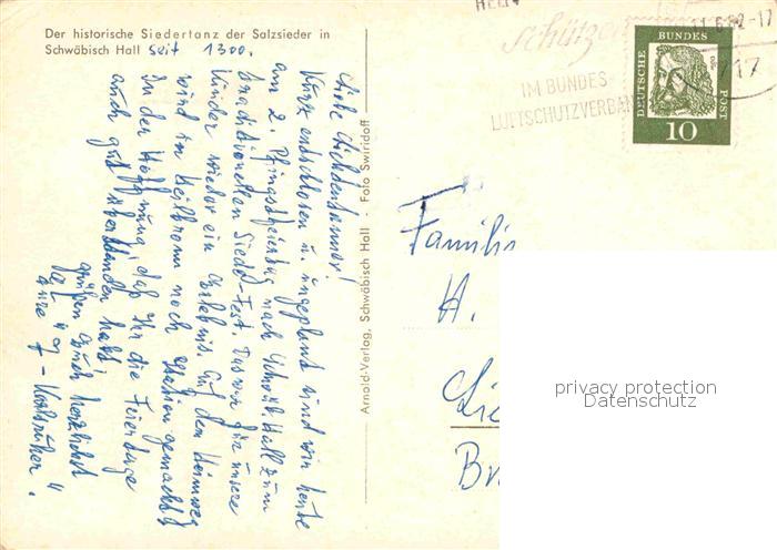 72617399 alte Postkarte Schwaebisch Hall Historischer Siedertanz der Salzsieder postalisch gelaufen Erhaltung siehe scans [WerneD78] KatCode: 11110008127076