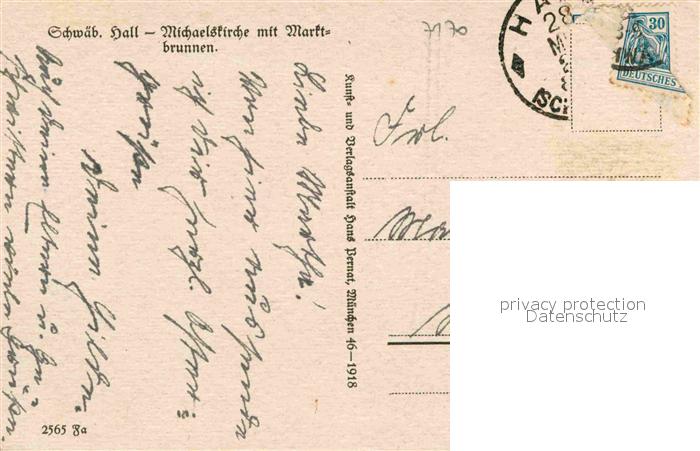 42669595 alte Postkarte Schwaebisch Hall Michaelskirche mit Marktbrunnen Zeichnung postalisch gelaufen Erhaltung siehe scans [WerneD78] KatCode: 11110008127076