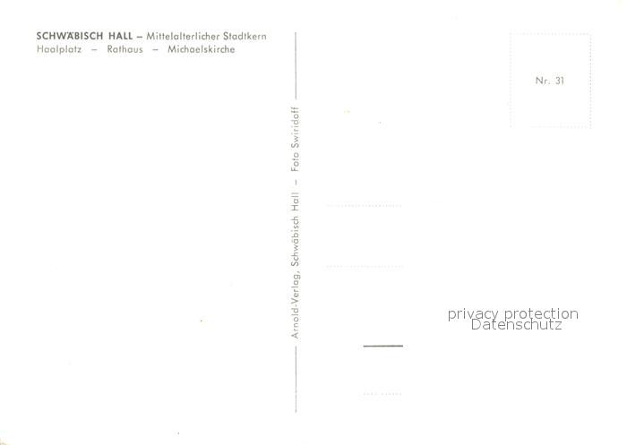 73181914 Schwaebisch Hall Mittelalterlicher Stadtkern Haalplatz Rathaus Michaelskirche postalisch nicht gelaufen Erhaltung siehe scans [FriedD77] KatCode: 11110008127076