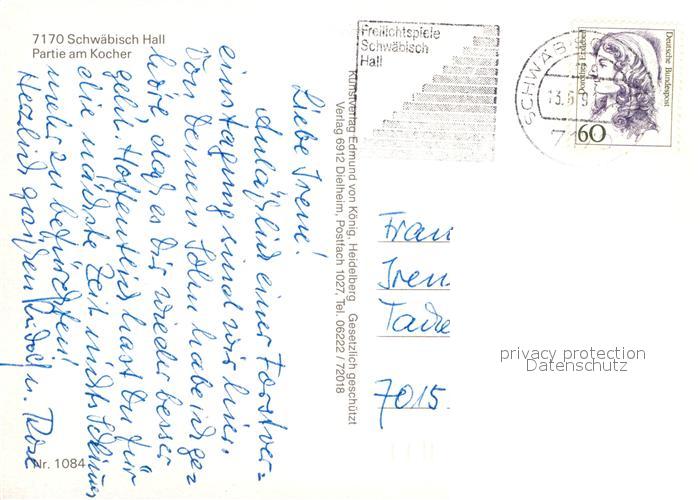 72981596 alte Postkarte Schwaebisch Hall Partie am Kocher postalisch gelaufen Erhaltung siehe scans [LiesaD40] KatCode: 11110008127076
