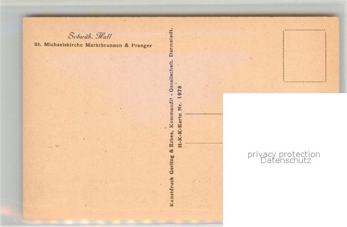 42952191 Schwaebisch Hall Sankt Michaeliskirche Marktbrunnen Pranger postalisch nicht gelaufen Erhaltung siehe scans [AndreD76] KatCode: 11110008127076
