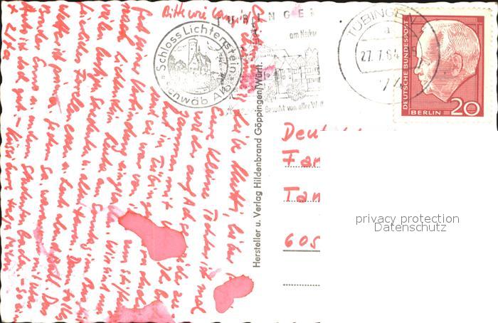 72430790 alte Postkarte Schwaebische Alb Schloss Lichtenstein postalisch gelaufen Erhaltung siehe scans KatCode: 11110008121000