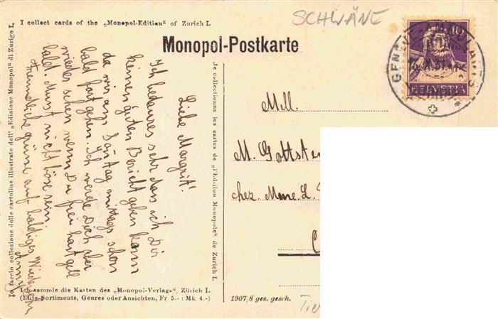 74025571 alte Postkarte Schwaene Cygnes Cigni Cisnes– Les cygnes Leman postalisch gelaufen Erhaltung siehe scans [IrynaD87] KatCode: 22540000000000