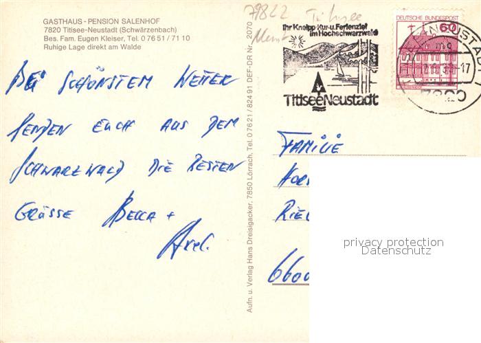 73054767 alte Postkarte Schwaerzenbach Titisee-Neustadt Gasthaus Pension Salenhof Gaststube Panorama postalisch gelaufen Erhaltung siehe scans [WerneD78] KatCode: 11110008315113
