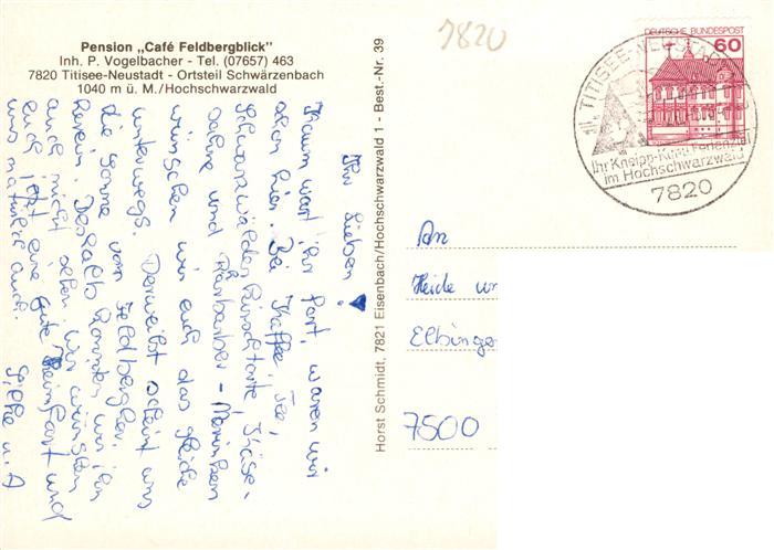 73928893 alte Postkarte Schwaerzenbach Titisee-Neustadt Pension Cafe Feldbergblick Gaststube postalisch gelaufen Erhaltung siehe scans [WerneD78] KatCode: 11110008315113