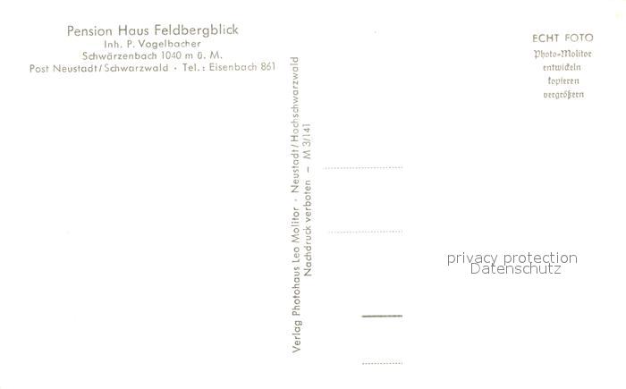 73204309 Schwaerzenbach Titisee-Neustadt Pension Haus Feldbergblick Landschaftspanorama Schwarzwald postalisch nicht gelaufen Erhaltung siehe scans [FriedD77] KatCode: 11110008315113