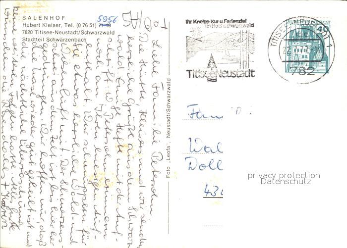 72016154 alte Postkarte Schwaerzenbach Titisee-Neustadt Salenhof postalisch gelaufen Erhaltung siehe scans KatCode: 11110008315113