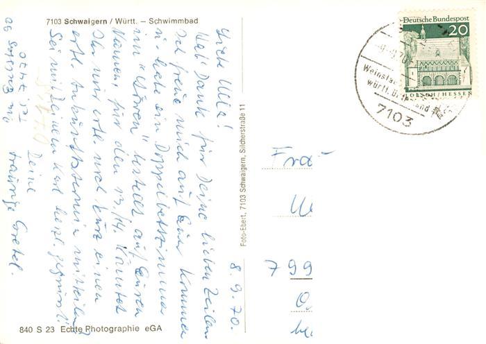 73874880 alte Postkarte Schwaigern Schwimmbad postalisch gelaufen Erhaltung siehe scans [WerneD78] KatCode: 11110008125086