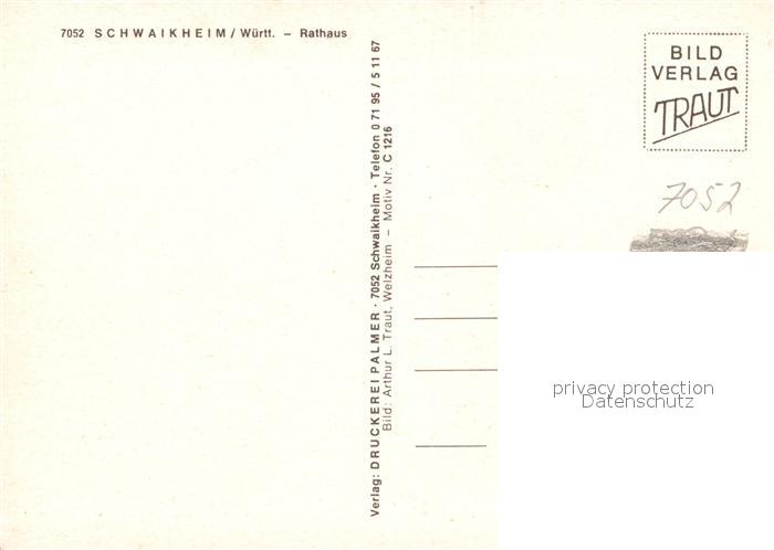 72991291 Schwaikheim Rathaus postalisch nicht gelaufen Erhaltung siehe scans [WerneD78] KatCode: 11110008119068