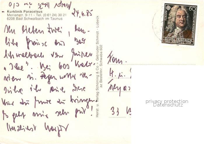 73082633 alte Postkarte Schwalbach Bad Kurklinik Paracelsus postalisch gelaufen Erhaltung siehe scans [KathaD81] KatCode: 11110006439002