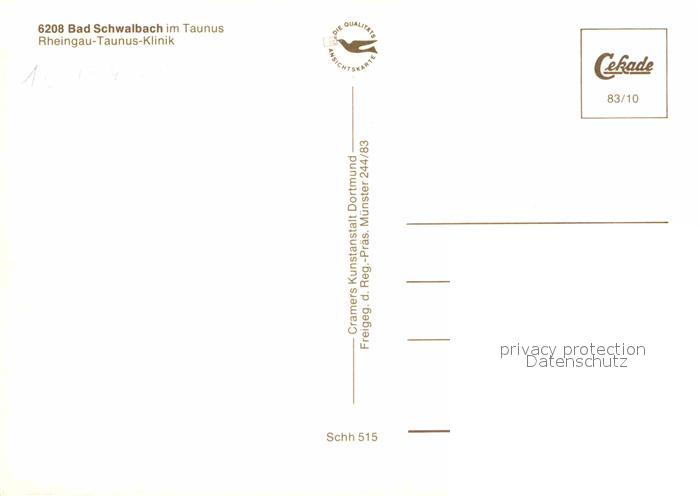 72701246 Schwalbach Bad Rheingau Taunus Klinik postalisch nicht gelaufen Erhaltung siehe scans [KathaD79] KatCode: 11110006439002