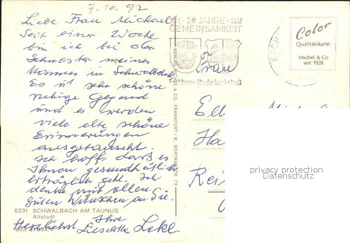 72418936 alte Postkarte Schwalbach Taunus Altstadt postalisch gelaufen Erhaltung siehe scans KatCode: 11110006436011