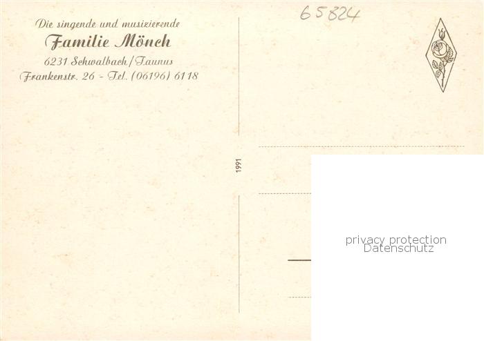 73865241 Schwalbach Taunus Musik-Familie Moench Hausmusik postalisch nicht gelaufen Erhaltung siehe scans [FriedD77] KatCode: 11110006436011