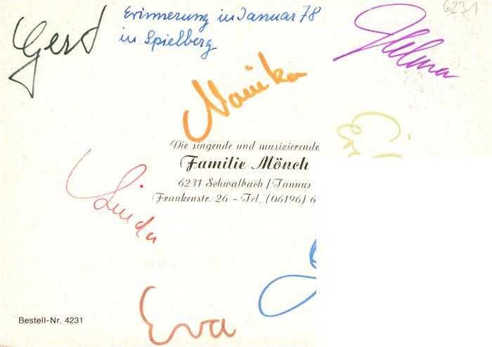 73935800 alte Postkarte Schwalbach Taunus Singende und musizierende Familie Moench postalisch gelaufen Werbekarte (keine Postkarte) Erhaltung siehe scans [WerneD78] KatCode: 11110006436011
