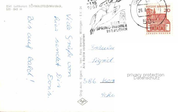 72794735 alte Postkarte Schwalefeld postalisch gelaufen Erhaltung siehe scans [LiesaD40] KatCode: 11110006635022