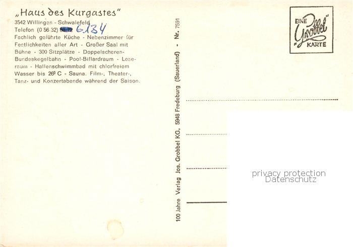 73813458 Schwalefeld Haus des Kurgastes Hallenbad Kegelbahn Gastraum Bar postalisch nicht gelaufen Erhaltung siehe scans [WerneD78] KatCode: 11110006635022