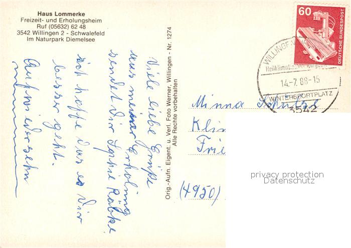 73103960 alte Postkarte Schwalefeld Haus Lommerke postalisch gelaufen Erhaltung siehe scans [WerneD78] KatCode: 11110006635022