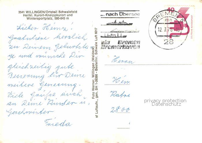 72781103 alte Postkarte Schwalefeld Heilklimatischer Kneipp Kurort Fliegeraufnahme postalisch gelaufen Erhaltung siehe scans [FriedD77] KatCode: 11110006635022