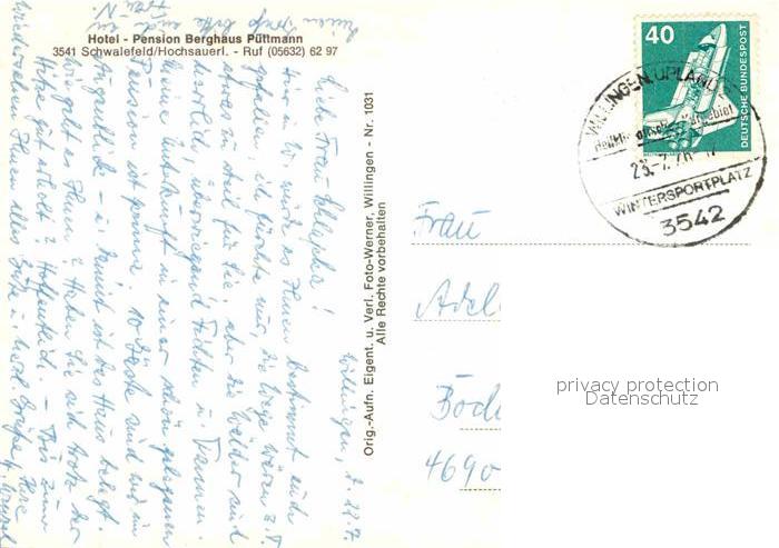 72751096 alte Postkarte Schwalefeld Hotel Pension Berghaus Puettmann postalisch gelaufen Erhaltung siehe scans [FriedD77] KatCode: 11110006635022