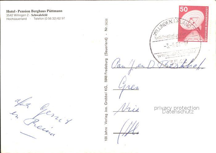 72304956 alte Postkarte Schwalefeld Hotel Pension Berghaus Puettmann postalisch gelaufen Erhaltung siehe scans KatCode: 11110006635022