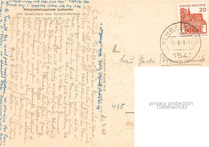 73844920 alte Postkarte Schwalefeld Muettererholungsheim Lommerke postalisch gelaufen Erhaltung siehe scans [FriedD77] KatCode: 11110006635022