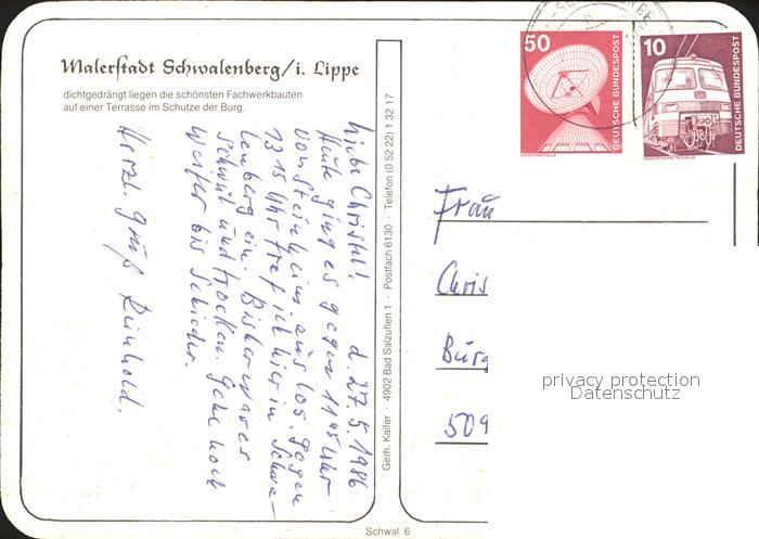72105441 alte Postkarte Schwalenberg postalisch gelaufen Erhaltung siehe scans KatCode: 11110005766060