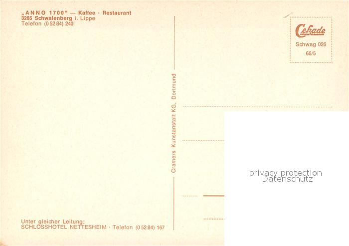 73650334 Schwalenberg ANNO 1700 Kaffee Restaurant postalisch nicht gelaufen Erhaltung siehe scans [WerneD78] KatCode: 11110005766060
