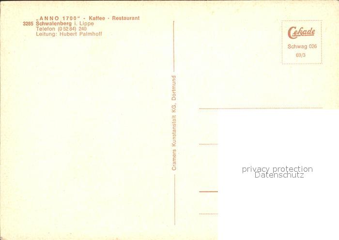 72496151 Schwalenberg Anno 1700 Kaffee Restaurant postalisch nicht gelaufen Erhaltung siehe scans KatCode: 11110005766060