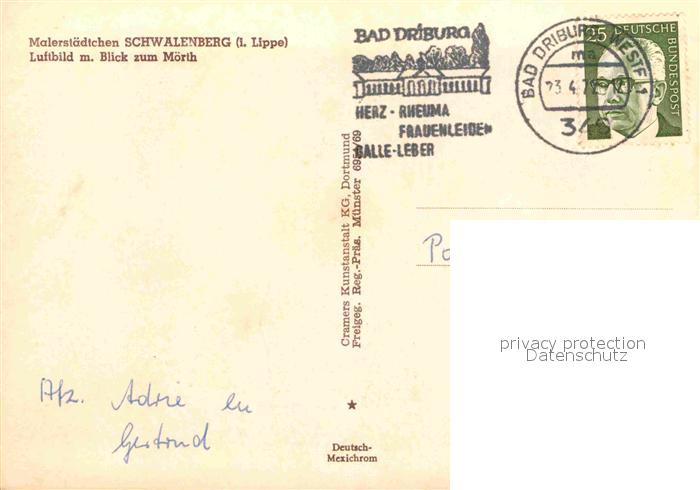 72662671 alte Postkarte Schwalenberg Fliegeraufnahme postalisch gelaufen Erhaltung siehe scans [AndreD76] KatCode: 11110005766060