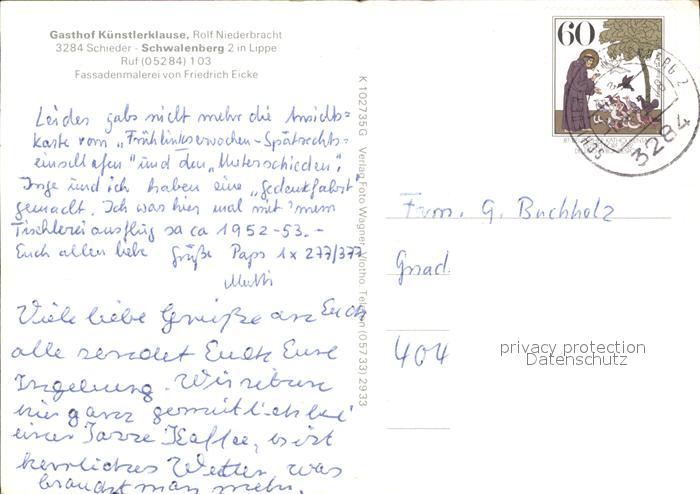71859458 alte Postkarte Schwalenberg Gasthaus Kuenstlerklause Fachwerk postalisch gelaufen Erhaltung siehe scans KatCode: 11110005766060