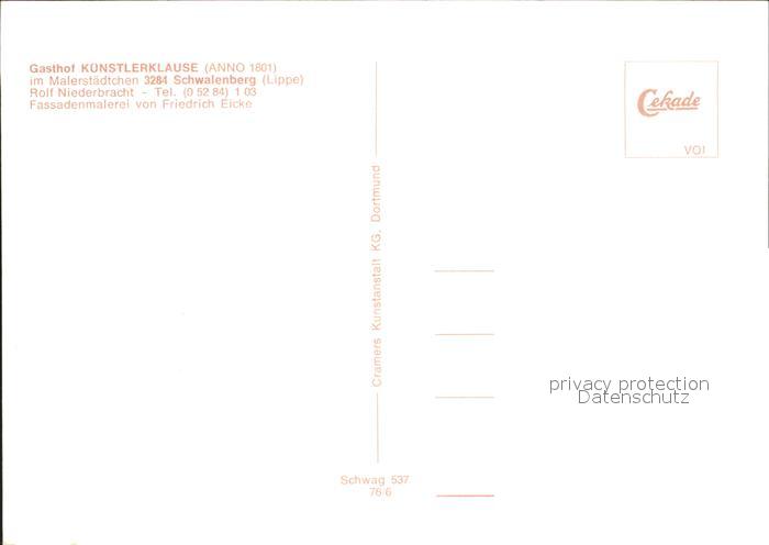 71822079 Schwalenberg Gasthof Kuenstlerklause postalisch nicht gelaufen Erhaltung siehe scans KatCode: 11110005766060